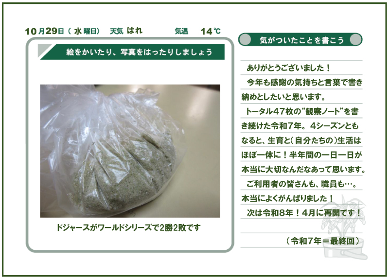 コロナ禍でも楽しめることや変わらないことは多く、会えないけれど繋がることはできる。ご利用者の皆さまも、私たちも、常に同じ時間同じ季節を過ごしているからこそ、通じるものを分かち合いたいと願っています。