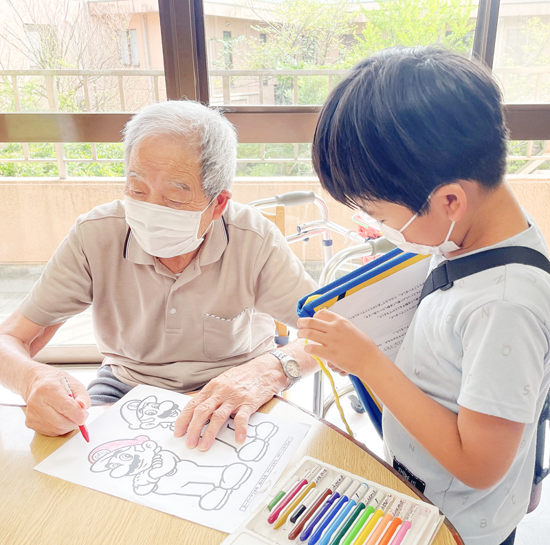 元気な子どもたちとのふれあいでご利用者も職員も笑顔あふれるひと時となりました。