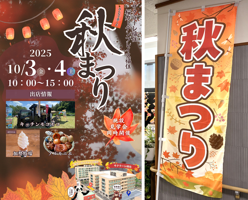 施設からのお知らせ 長岡三古老人福祉会施設からのお知らせ秋まつり開催!🍂🐻🐼 秋まつり開催!🍂🐻🐼 2025年10月06日 サクラーレ福住 会場では、キッチンモコモコ・アルモニエ・加勢牧場などの飲食販売、ご利用者作品展、ハロウィン装飾、車いす体験、看護師体験、ガーデン神社おみくじ、クマとパンダとの触れ合いなど様々な催し物がありました。 大変盛り上がり、キッチンカーは長蛇の列ができ、ガーデン神社では「大吉」が続発していました。 2日間無事に開催することができました。 お越しいただいた皆様ありがとうございました。