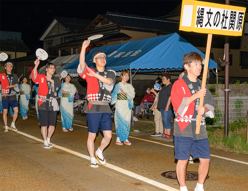 縄文の杜関原では、13日の前夜祭に職員が民謡流しに参加して、笑顔いっぱいに踊りに加わりました。とても活気にあふれ、地域の方々からも温かい拍手をいただきました。