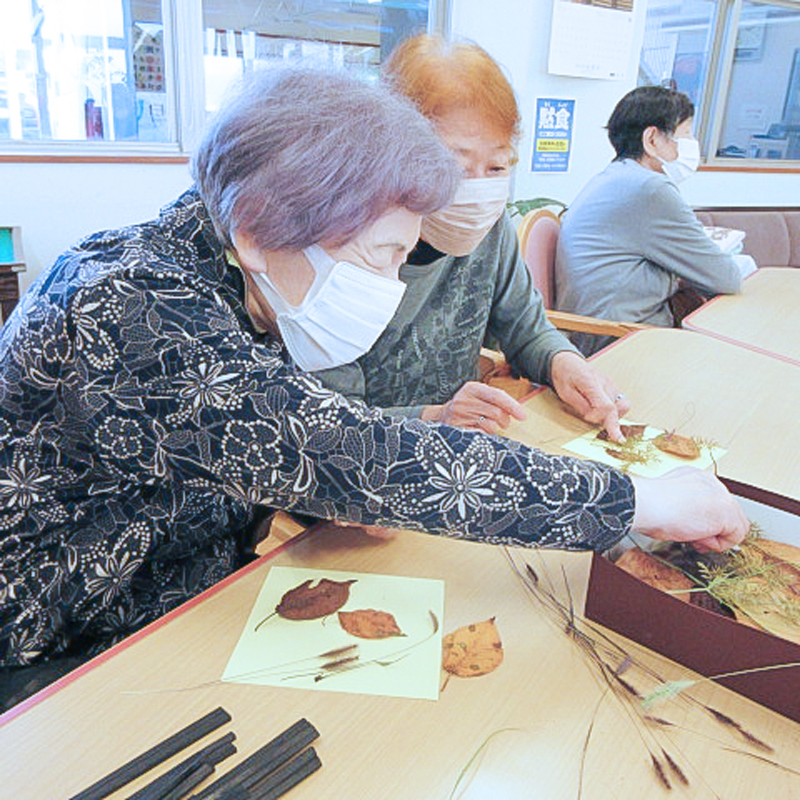 施設からのお知らせ 長岡三古老人福祉会施設からのお知らせ秋の創作活動 秋の創作活動 2025年10月21日 幸町 桜の花を見たのもつい最近の気になっていましたが、季節は変わり、落ち葉が舞い散る季節になりました。 出勤時に落ち葉を見ながら「綺麗だな」と、色とりどりの落ち葉を拾ってきました。 今月は、落ち葉を使った制作を行いました。 好みのデザインで並べていき、木枠を付けると和風の「壁飾り」の完成です。