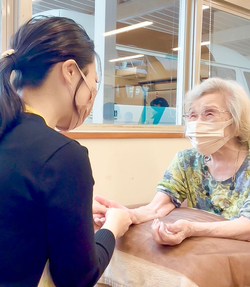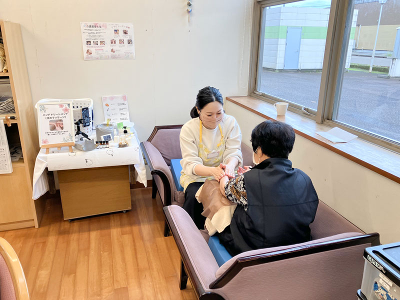 利用者様一人につき15分程度かけ、丁寧にハンドマッサージの施術を行なっていただきました。