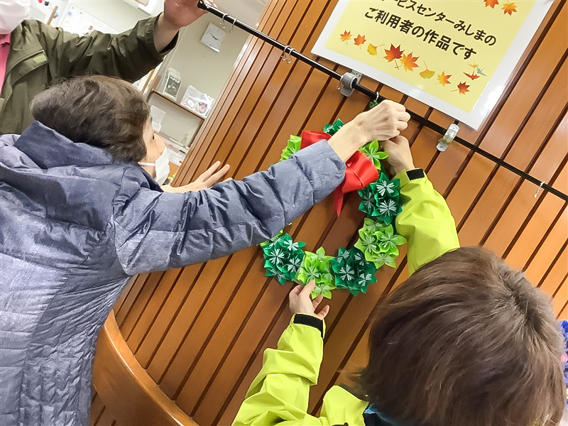 先日デイサービスセンターのご利用者の皆様と一緒に、クリスマスの飾りつけで三島支所に伺いました。