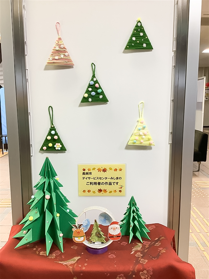 先日デイサービスセンターのご利用者の皆様と一緒に、クリスマスの飾りつけで三島支所に伺いました。
