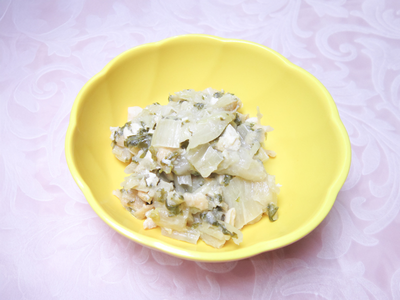 ごちそうの日に皆さんの漬けたタイ菜を給食職員がおいしく調理し、『煮菜』を召し上がっていただきました😊