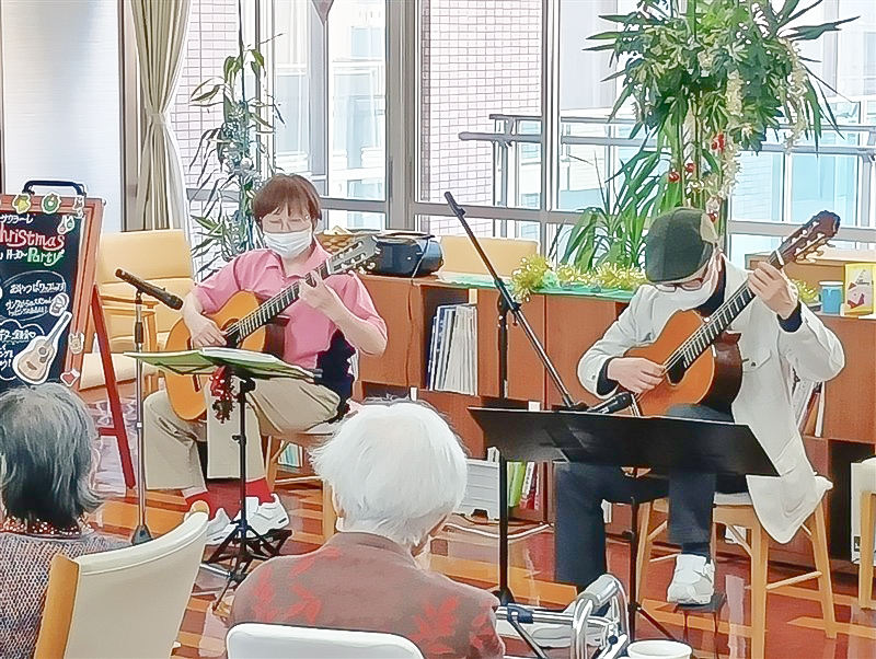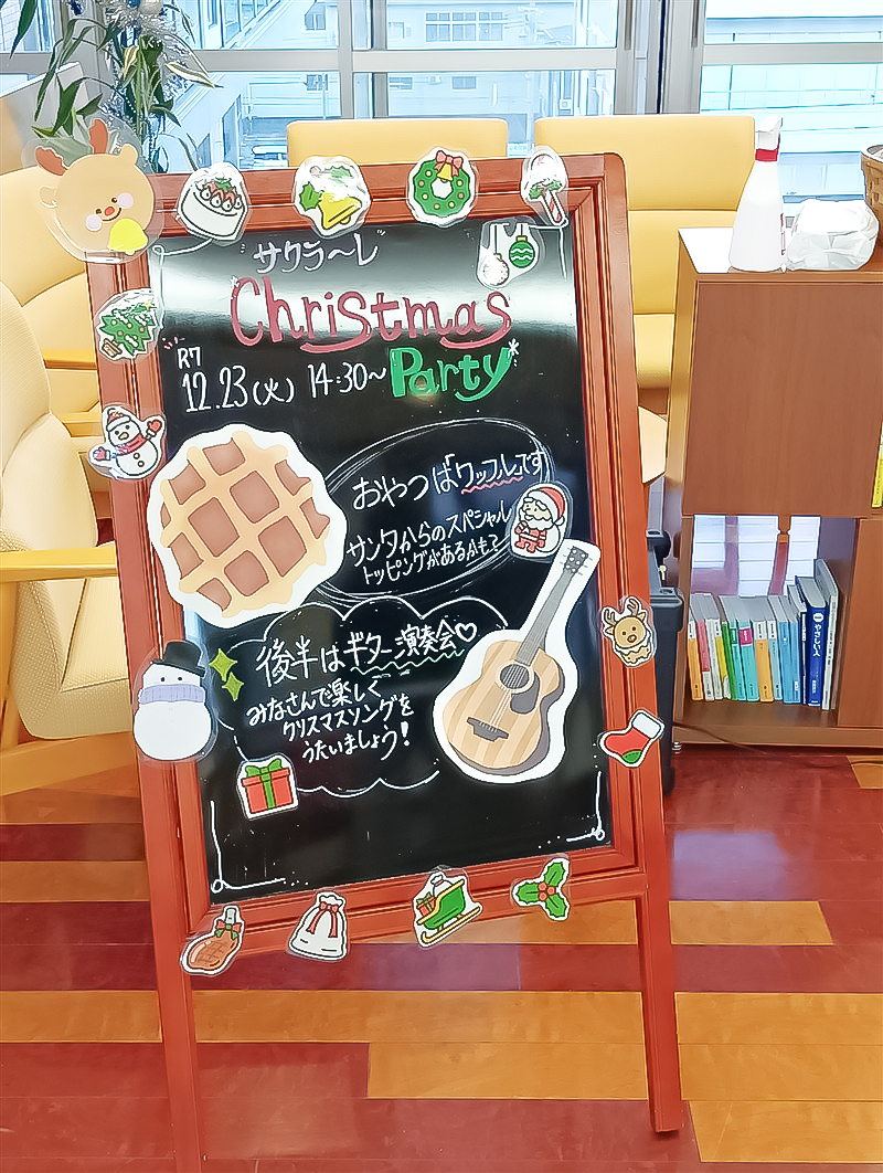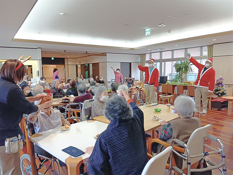 施設からのお知らせ 長岡三古老人福祉会施設からのお知らせサービス付き高齢者向け住宅・クリスマス会🎅🎄🍰 サービス付き高齢者向け住宅・クリスマス会🎅🎄🍰 2025年12月24日 サクラーレ福住 12月23日(火)、サクラーレ福住5階サービス付き高齢者向け住宅にサンタとトナカイが降り立ち、クリスマス会を開催しました。 福住ギター倶楽部のクリスマスソングの演奏後に、職員手作りのケーキを召し上がっていただいております。 とても盛況でご利用者の皆様楽しい時間を過ごしていただけたと思います。 サンタとトナカイも楽しんだようでした。