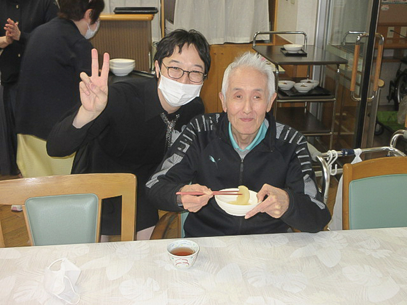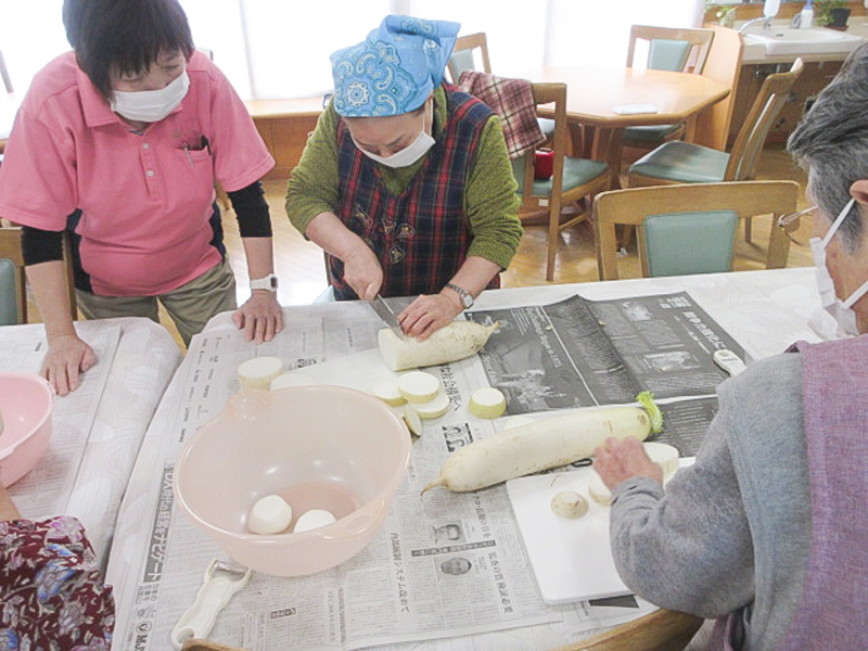 お楽しみ会終了後は、ご入居者が畑で育てた大根でおでんを作り、美味しくいただきました。