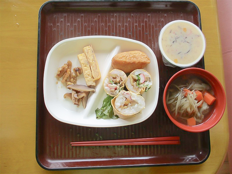 昼食には、薄焼き卵で巻いた恵方巻をみなさんで美味しくいただきました😋