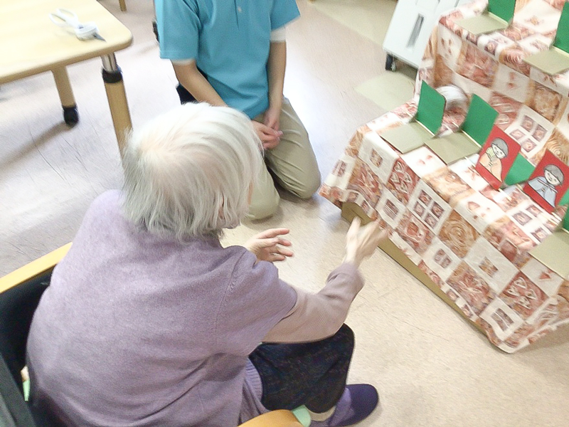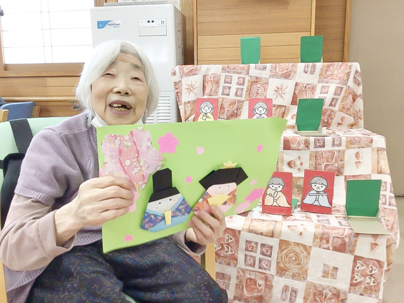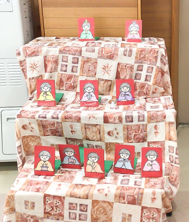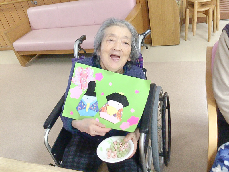 的当てのレクリエーションやひな祭りの歌を歌い、ひなあられと梅昆布茶を楽しみました。