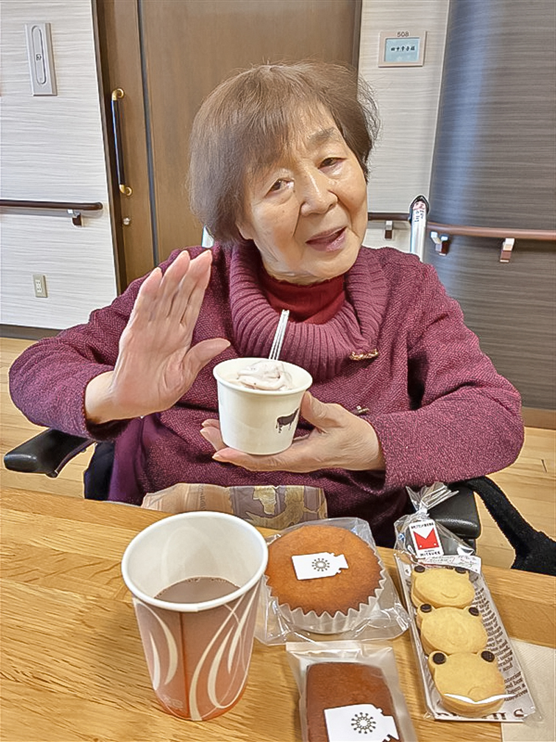 当日は、桜ガーデンプレイス福住の2階グループホームを経由し、サクラーレ福住の5階サービス付き高齢者向け住宅と1階ロビーにてご利用者と職員向けに、各フロアで販売していただきました。
